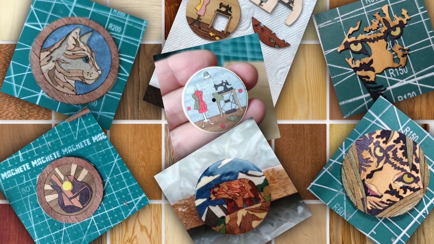 После утверждения рисунка, подбора шпона по текстуре, цвету и направлению волокон, осуществляется нарезка каждого элемента. Затем на специально подготовленной основе маркетрист производит сборку рисунка и его наклейку на латунную основу под небольшим давлением. После отвердения клея заготовка циферблата несколько раз аккуратно шлифуется, с обязательным контролем качества на каждом этапе.